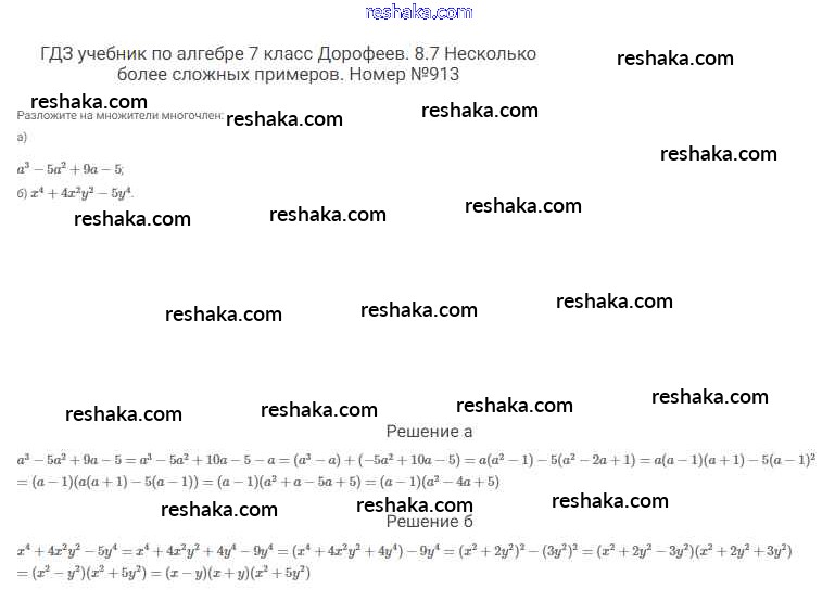 Решака - онлайн ответы Алгебра Дорофеев, Суворова за 7 класс Учебник ФГОС 2020 - 913