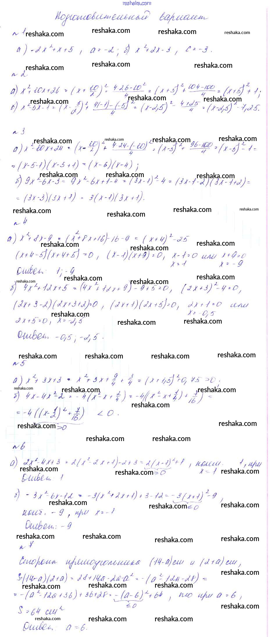 Решака - онлайн ответы Алгебра Феоктистов за 7 класс Дидактические материалы Углубленный уровень ФГОС 2016 - Подготовительный вариант