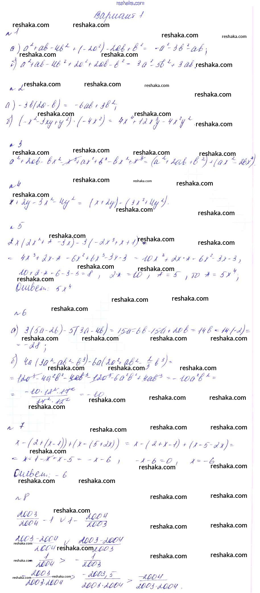 Решака - онлайн ответы Алгебра Феоктистов за 7 класс Дидактические материалы Углубленный уровень ФГОС 2016 - Вариант 1