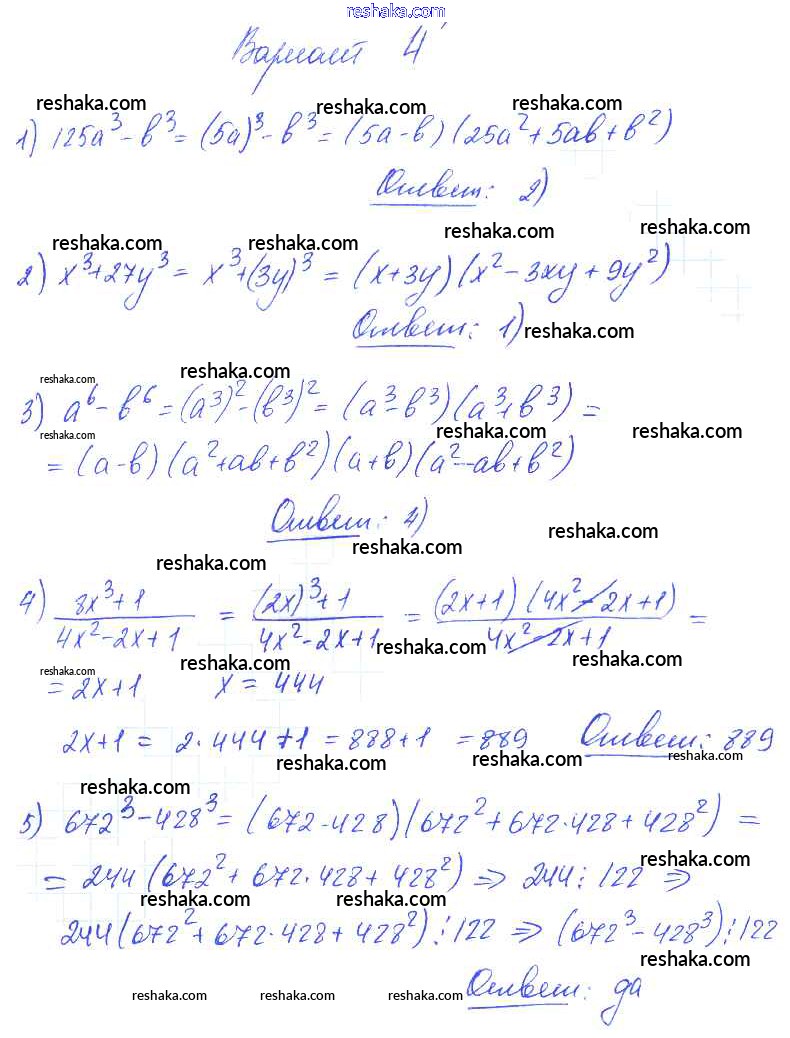 Решака - онлайн ответы Алгебра Глазков, Гаиашвили за 7 класс Самостоятельные и контрольные работы ФГОС 2019 - вариант 4