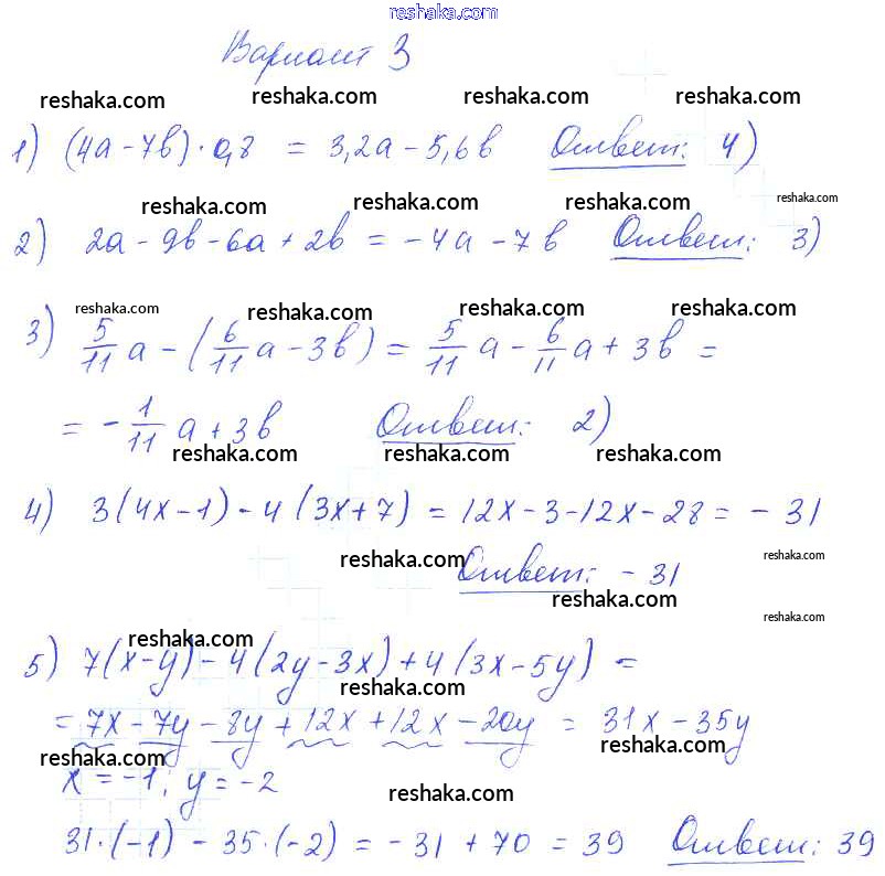 Решака - онлайн ответы Алгебра Глазков, Гаиашвили за 7 класс Самостоятельные и контрольные работы ФГОС 2019 - вариант 3