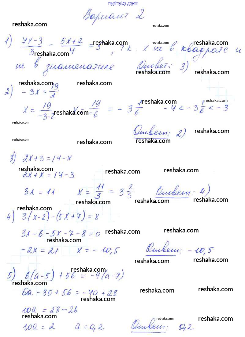 Решака - онлайн ответы Алгебра Глазков, Гаиашвили за 7 класс Самостоятельные и контрольные работы ФГОС 2019 - вариант 2