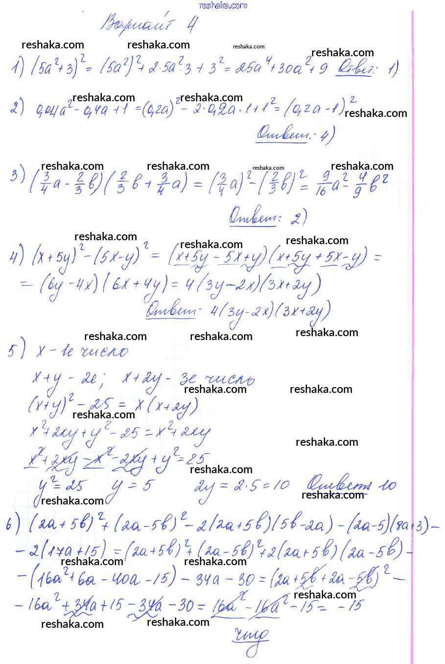 Решака - онлайн ответы Алгебра Глазков, Гаиашвили за 7 класс Самостоятельные и контрольные работы ФГОС 2019 - вариант 4