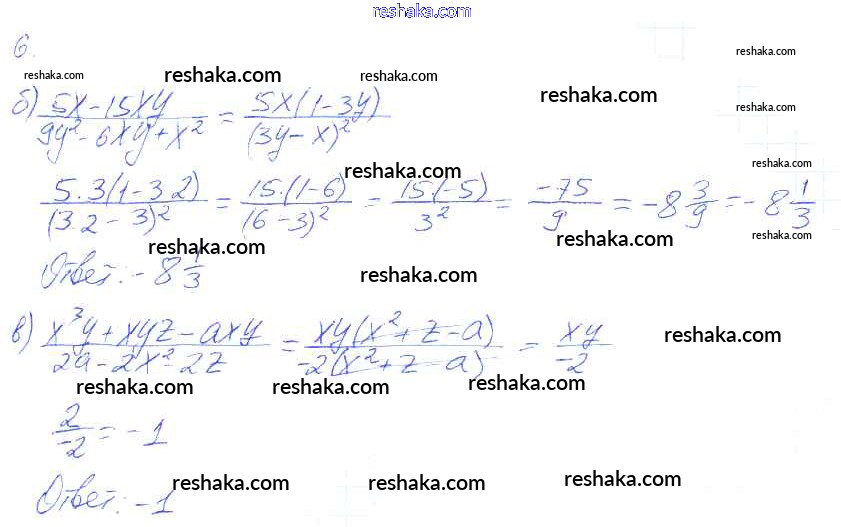 Представляем вам сборники по Алгебре, с готовыми ответами к Рабочей тетради Ключникова школьной программы для учеников седьмой класса. Это не просто гдз с ответом, а с подсказками, как верно решить §35. Сокращение алгебраических дробей 6. Проверяй домашку с умом и получай высший балл!
