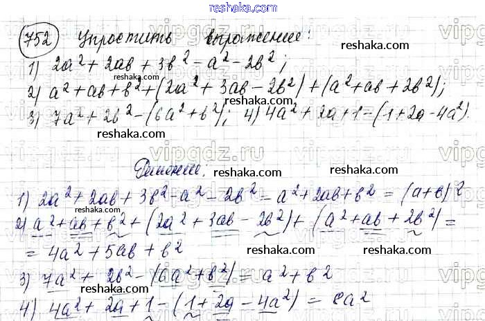 Решака - онлайн ответы Алгебра Колягин, Ткачёва за 7 класс Учебник ФГОС 2012 - 752
