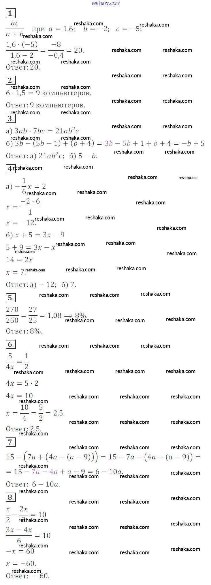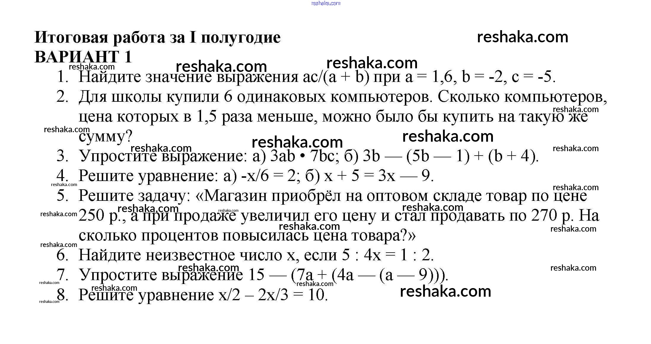 Решака - онлайн ответы Алгебра Кузнецова, Минаева за 7 класс Контрольные работы ФГОС 2018 - Вариант 1
