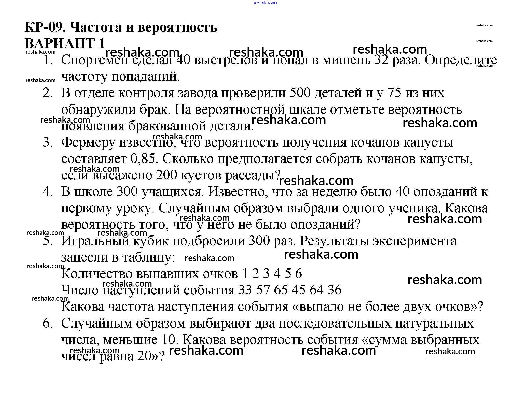 Представляем вам сборники по Алгебре, с готовыми ответами к Контрольным работам Кузнецова школьной программы для учеников седьмой класса. Это не просто гдз с ответом, а с подсказками, как верно решить Контрольная работа №9. Частота и вероятность Вариант 1. Проверяй домашку с умом и получай высший балл!