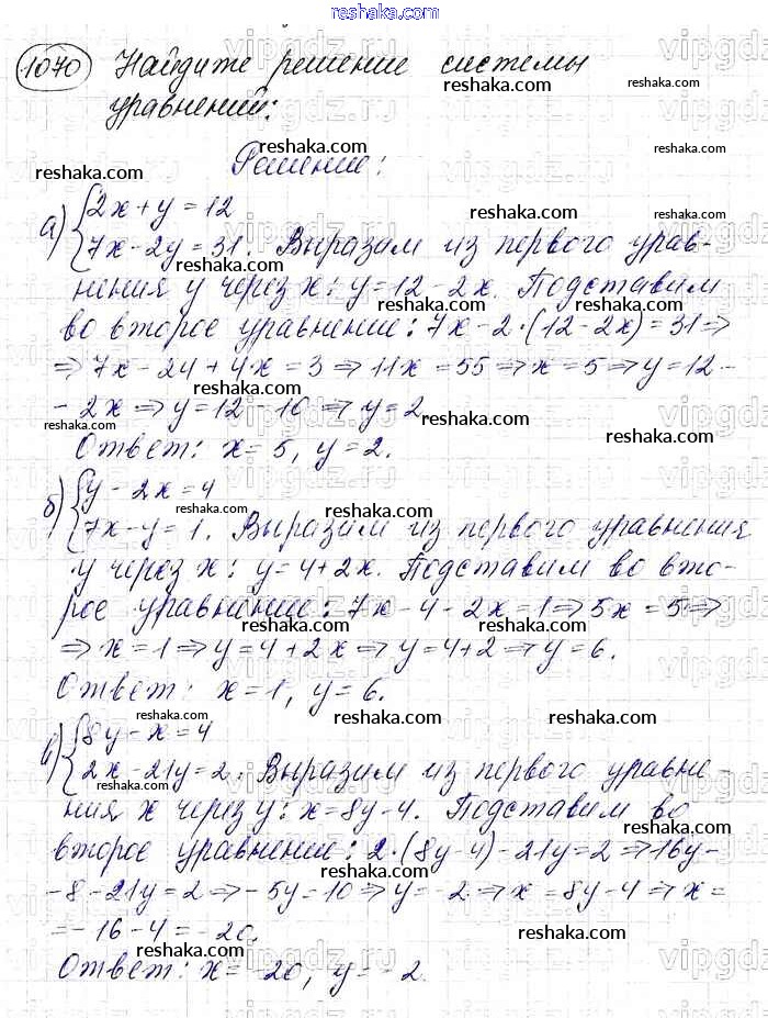 Представляем вам сборники по Алгебре, с готовыми ответами к Учебнику Макарычев школьной программы для учеников седьмой класса. Это не просто гдз с ответом, а с подсказками, как верно решить Упражнения 1070. Проверяй домашку с умом и получай высший балл!