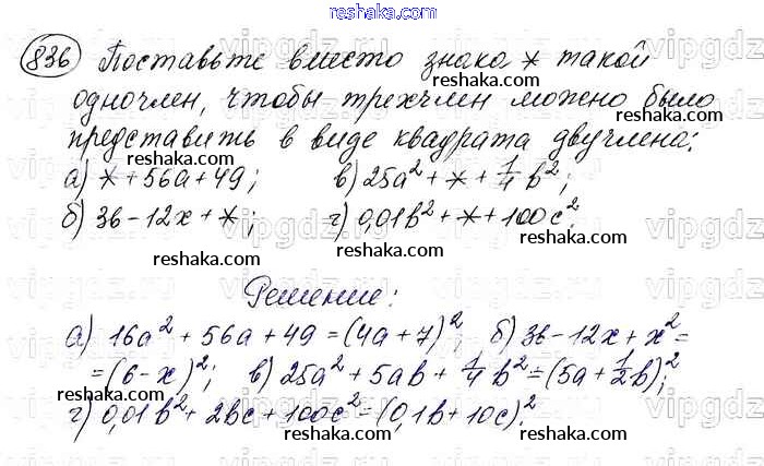 Решака - онлайн ответы Алгебра Макарычев, Миндюк за 7 класс Учебник ФГОС 2015 - 836