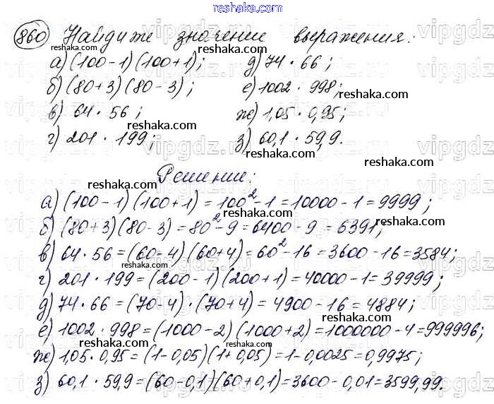 Представляем вам сборники по Алгебре, с готовыми ответами к Учебнику Макарычев школьной программы для учеников седьмой класса. Это не просто гдз с ответом, а с подсказками, как верно решить Упражнения 860. Проверяй домашку с умом и получай высший балл!