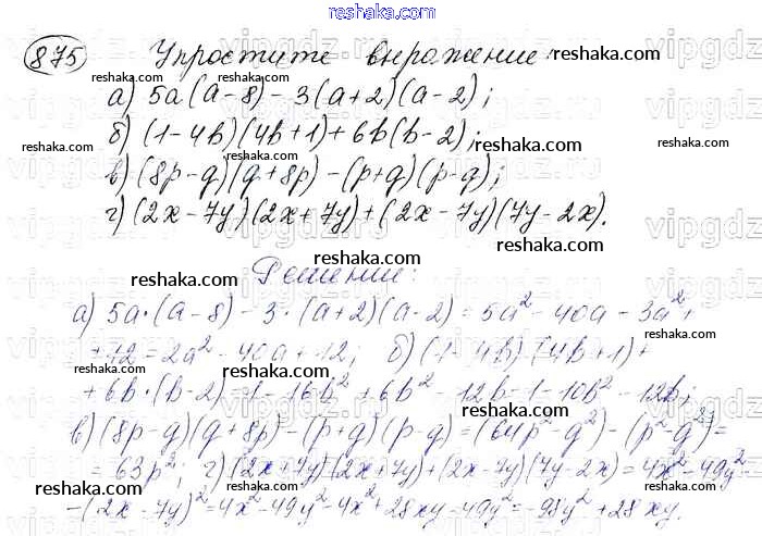 Представляем вам сборники по Алгебре, с готовыми ответами к Учебнику Макарычев школьной программы для учеников седьмой класса. Это не просто гдз с ответом, а с подсказками, как верно решить Упражнения 875. Проверяй домашку с умом и получай высший балл!