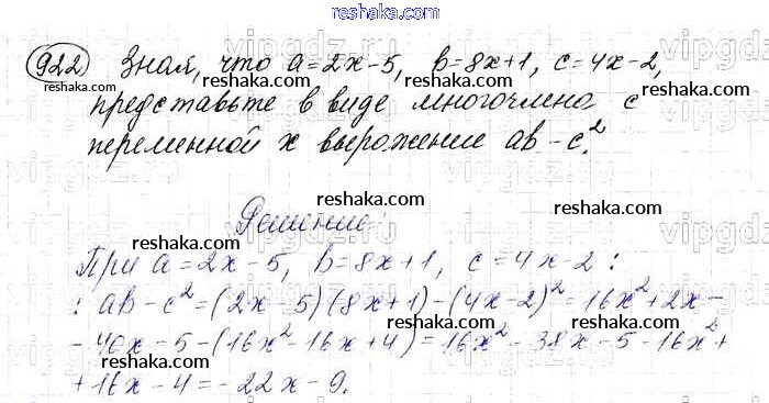 Представляем вам сборники по Алгебре, с готовыми ответами к Учебнику Макарычев школьной программы для учеников седьмой класса. Это не просто гдз с ответом, а с подсказками, как верно решить Упражнения 922. Проверяй домашку с умом и получай высший балл!