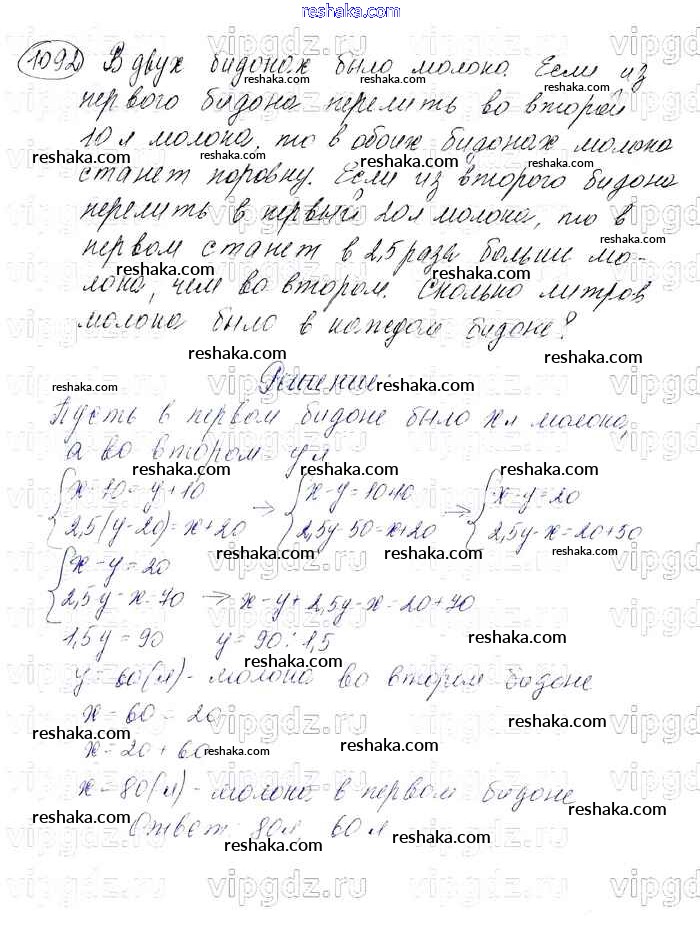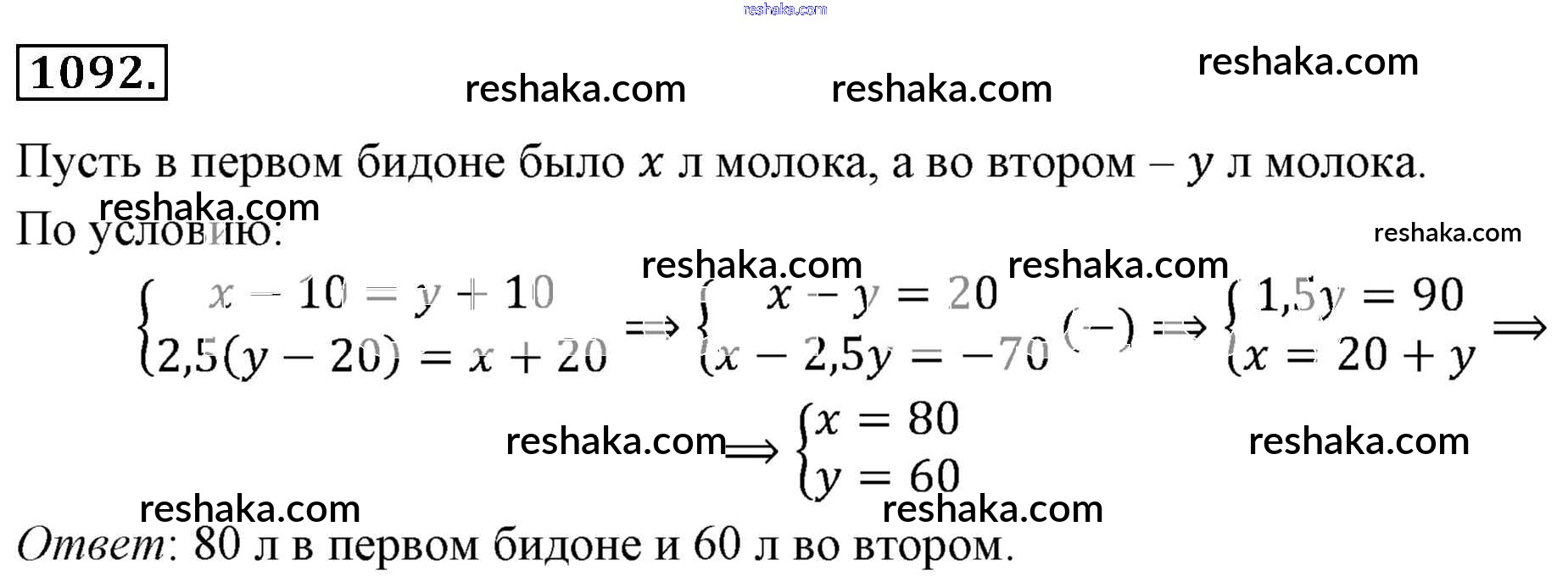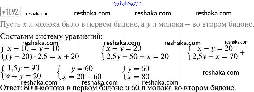 Решака - онлайн ответы Алгебра Мерзляк, Полонский за 7 класс Учебник Базовый уровень ФГОС 2016 - 1092