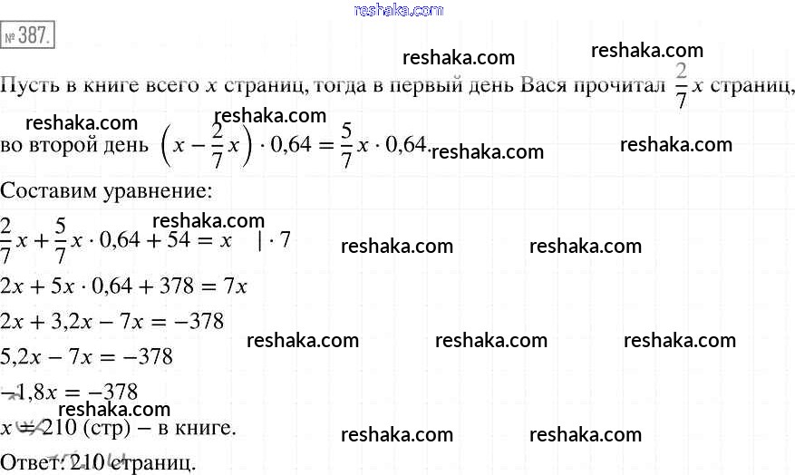 Решака - онлайн ответы Алгебра Мерзляк, Полонский за 7 класс Учебник Базовый уровень ФГОС 2016 - 387