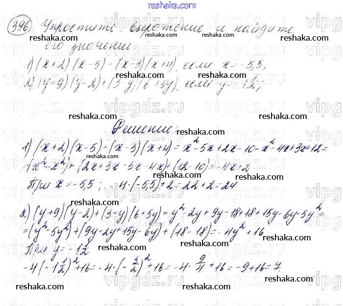 Решака - онлайн ответы Алгебра Мерзляк, Полонский за 7 класс Учебник Базовый уровень ФГОС 2016 - 396
