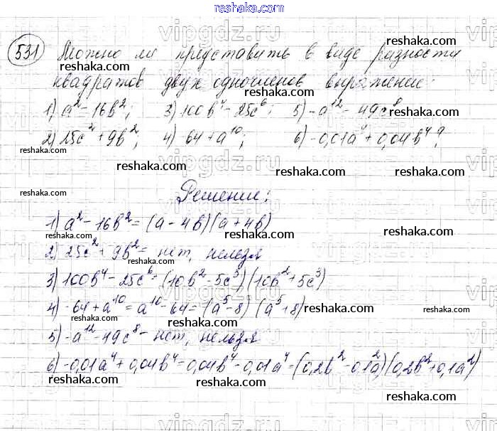 Решака - онлайн ответы Алгебра Мерзляк, Полонский за 7 класс Учебник Базовый уровень ФГОС 2016 - 531