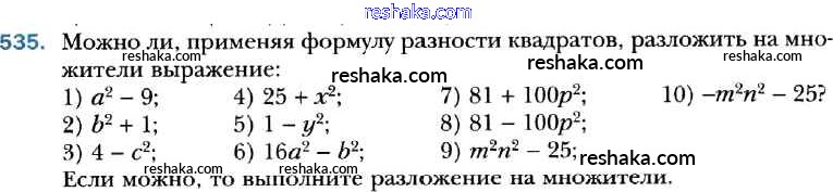 Решака - онлайн ответы Алгебра Мерзляк, Полонский за 7 класс Учебник Базовый уровень ФГОС 2016 - 535