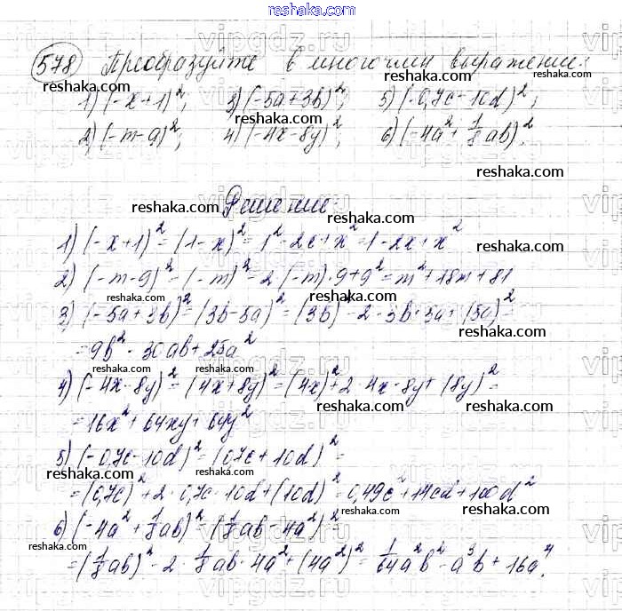 Решака - онлайн ответы Алгебра Мерзляк, Полонский за 7 класс Учебник Базовый уровень ФГОС 2016 - 578