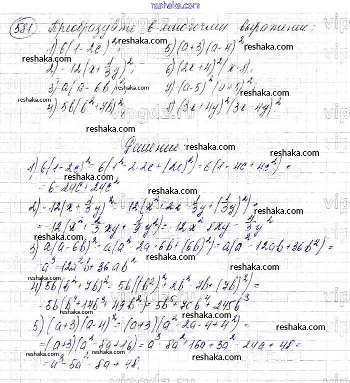 Решака - онлайн ответы Алгебра Мерзляк, Полонский за 7 класс Учебник Базовый уровень ФГОС 2016 - 581