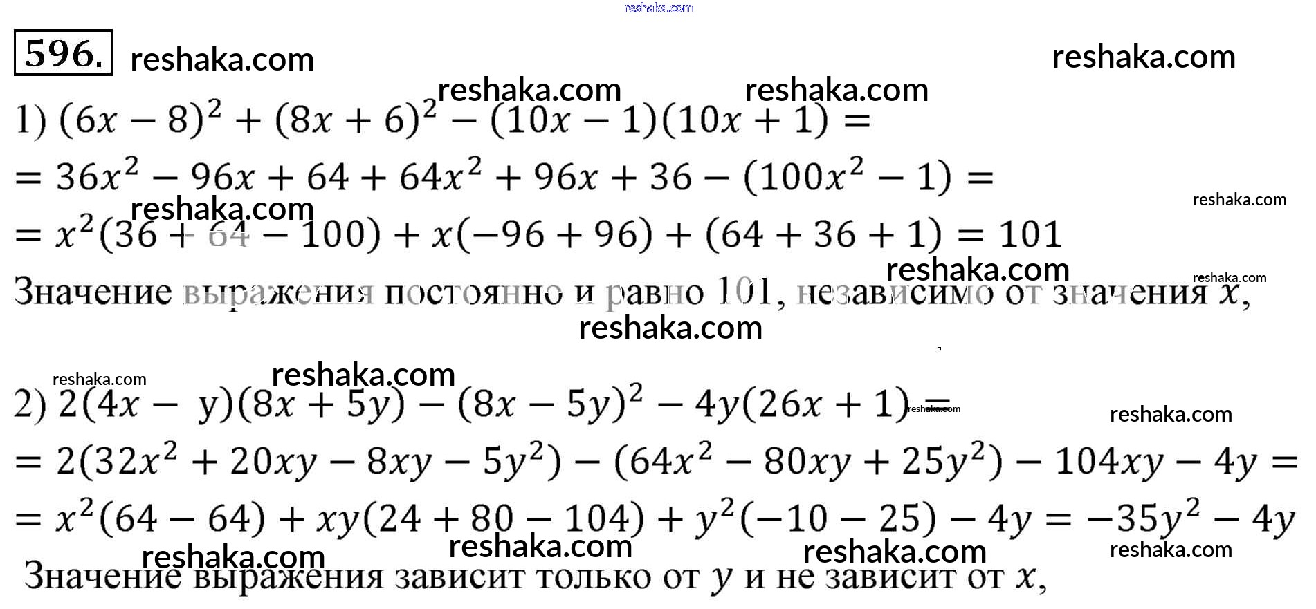 Решака - онлайн ответы Алгебра Мерзляк, Полонский за 7 класс Учебник Базовый уровень ФГОС 2016 - 596