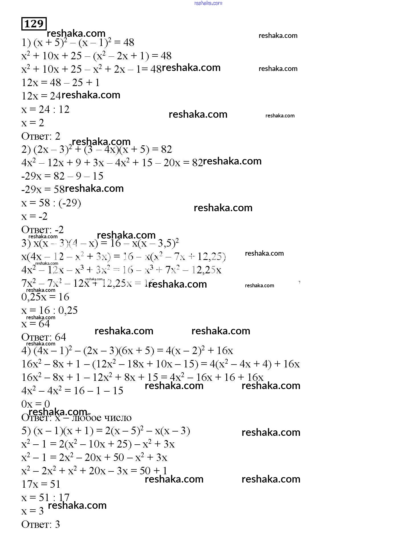 Решака - онлайн ответы Алгебра Мерзляк, Полонский за 7 класс Дидактические материалы ФГОС 2017 - 129