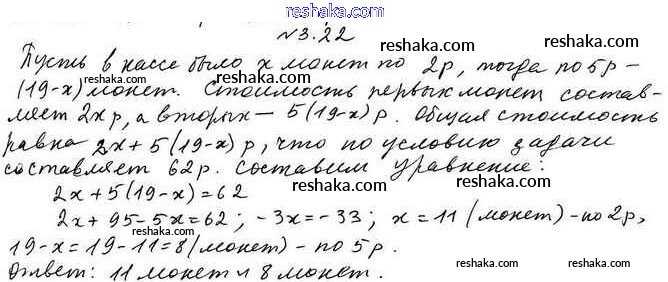 Представляем вам сборники по Алгебре, с готовыми ответами к Учебнику Мерзляк школьной программы для учеников седьмой класса. Это не просто гдз с ответом, а с подсказками, как верно решить §3. Решение задач с помощью уравнений 3.22. Проверяй домашку с умом и получай высший балл!