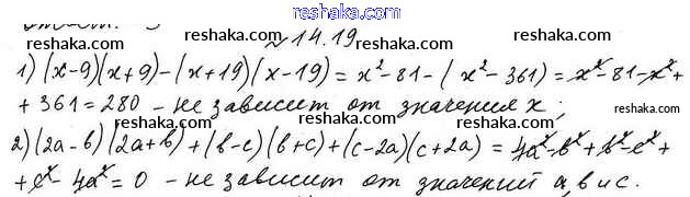 Представляем вам сборники по Алгебре, с готовыми ответами к Учебнику Мерзляк школьной программы для учеников седьмой класса. Это не просто гдз с ответом, а с подсказками, как верно решить §14. Произведение разности и суммы двух выражений 14.19. Проверяй домашку с умом и получай высший балл!