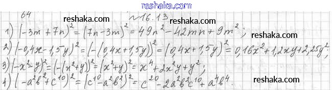 Представляем вам сборники по Алгебре, с готовыми ответами к Учебнику Мерзляк школьной программы для учеников седьмой класса. Это не просто гдз с ответом, а с подсказками, как верно решить §16. Квадрат суммы и квадрат разности двух выражений. Квадрат суммы нескольких выражений 16.13. Проверяй домашку с умом и получай высший балл!