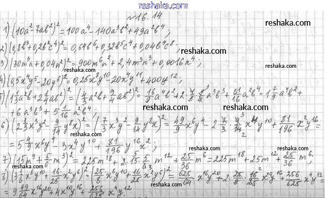 Представляем вам сборники по Алгебре, с готовыми ответами к Учебнику Мерзляк школьной программы для учеников седьмой класса. Это не просто гдз с ответом, а с подсказками, как верно решить §16. Квадрат суммы и квадрат разности двух выражений. Квадрат суммы нескольких выражений 16.14. Проверяй домашку с умом и получай высший балл!