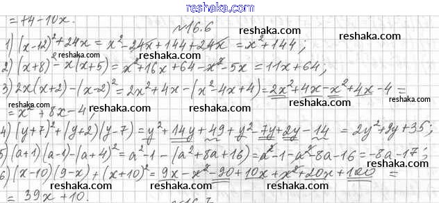 Представляем вам сборники по Алгебре, с готовыми ответами к Учебнику Мерзляк школьной программы для учеников седьмой класса. Это не просто гдз с ответом, а с подсказками, как верно решить §16. Квадрат суммы и квадрат разности двух выражений. Квадрат суммы нескольких выражений 16.6. Проверяй домашку с умом и получай высший балл!