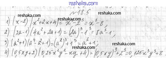 Представляем вам сборники по Алгебре, с готовыми ответами к Учебнику Мерзляк школьной программы для учеников седьмой класса. Это не просто гдз с ответом, а с подсказками, как верно решить §18. Сумма и разность кубов двух выражений 18.5. Проверяй домашку с умом и получай высший балл!