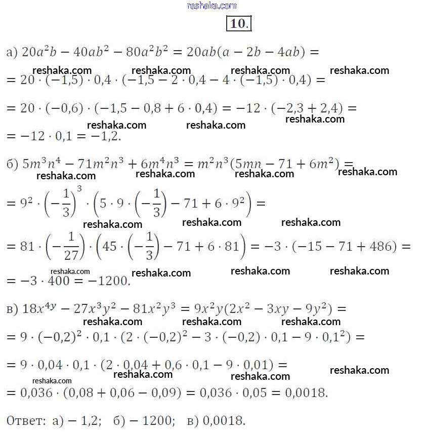 Представляем вам сборники по Алгебре, с готовыми ответами к Рабочей тетради Миндюк школьной программы для учеников седьмой класса. Это не просто гдз с ответом, а с подсказками, как верно решить §25. Вынесение общего множителя за скобки 10. Проверяй домашку с умом и получай высший балл!