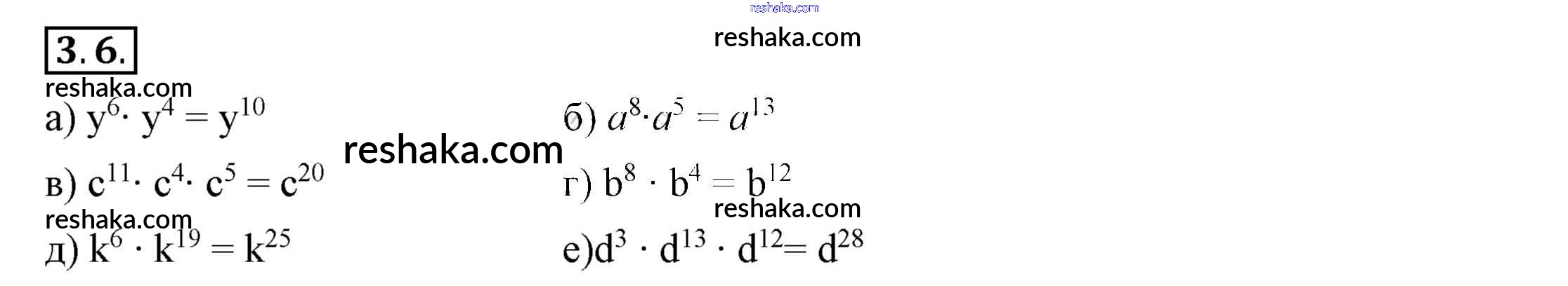 Представляем вам сборники по Алгебре, с готовыми ответами к Учебнику Мордкович школьной программы для учеников седьмой класса. Это не просто гдз с ответом, а с подсказками, как верно решить §3. Свойства степеней с натуральными показателями 3.6. Проверяй домашку с умом и получай высший балл!