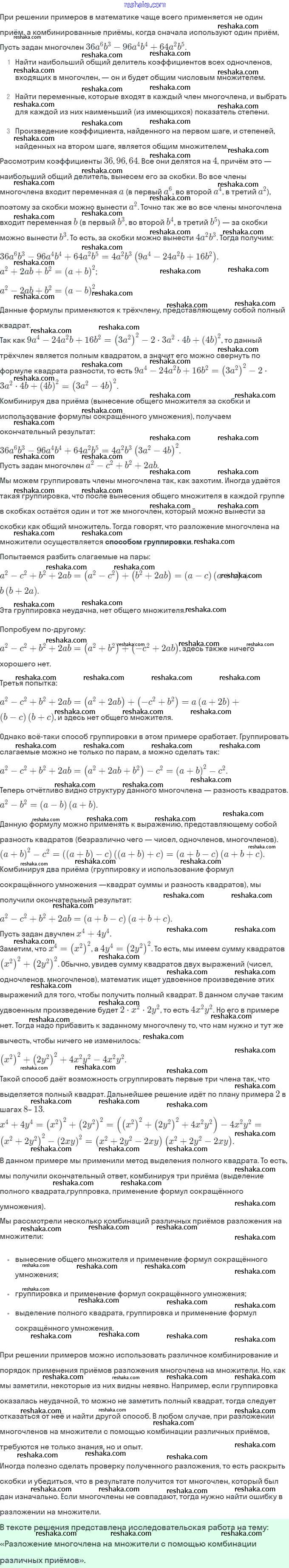 Представляем вам сборники по Алгебре, с готовыми ответами к Учебнику Мордкович школьной программы для учеников седьмой класса. Это не просто гдз с ответом, а с подсказками, как верно решить Темы исследовательских работ Глава 7. Разложение многочленов на множители 2. Проверяй домашку с умом и получай высший балл!