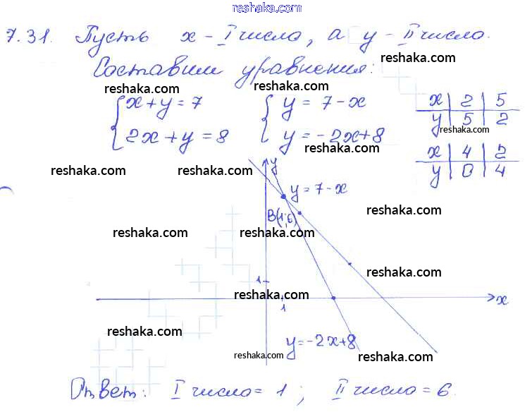Представляем вам сборники по Алгебре, с готовыми ответами к Задачнику Мордкович школьной программы для учеников седьмой класса. Это не просто гдз с ответом, а с подсказками, как верно решить § 7. Линейное уравнение с двумя переменными и его график Глава 2 31. Проверяй домашку с умом и получай высший балл!