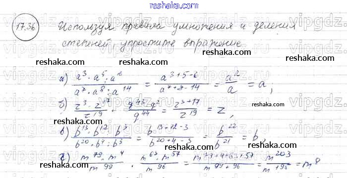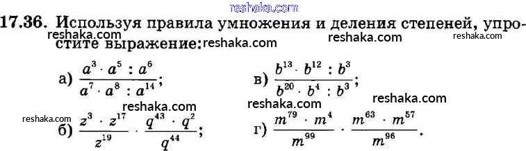 Представляем вам сборники по Алгебре, с готовыми ответами к Задачнику Мордкович школьной программы для учеников седьмой класса. Это не просто гдз с ответом, а с подсказками, как верно решить § 17. Свойства степени с натуральными показателями Глава 4 36. Проверяй домашку с умом и получай высший балл!