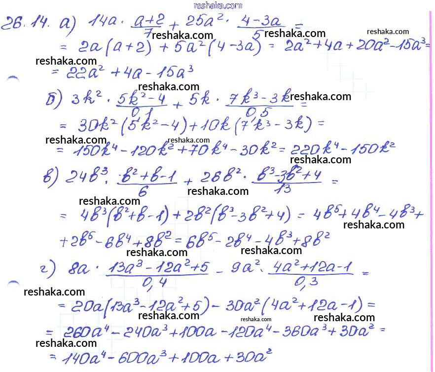 Представляем вам сборники по Алгебре, с готовыми ответами к Задачнику Мордкович школьной программы для учеников седьмой класса. Это не просто гдз с ответом, а с подсказками, как верно решить § 26. Умножение многочлена на одночлен Глава 6 14. Проверяй домашку с умом и получай высший балл!