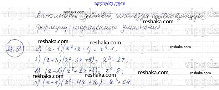 Представляем вам сборники по Алгебре, с готовыми ответами к Задачнику Мордкович школьной программы для учеников седьмой класса. Это не просто гдз с ответом, а с подсказками, как верно решить § 28. Формулы сокращенного умножения Глава 6 31. Проверяй домашку с умом и получай высший балл!