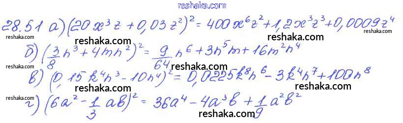 Представляем вам сборники по Алгебре, с готовыми ответами к Задачнику Мордкович школьной программы для учеников седьмой класса. Это не просто гдз с ответом, а с подсказками, как верно решить § 28. Формулы сокращенного умножения Глава 6 51. Проверяй домашку с умом и получай высший балл!