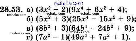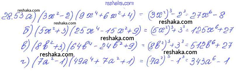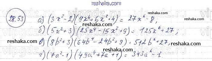 Представляем вам сборники по Алгебре, с готовыми ответами к Задачнику Мордкович школьной программы для учеников седьмой класса. Это не просто гдз с ответом, а с подсказками, как верно решить § 28. Формулы сокращенного умножения Глава 6 53. Проверяй домашку с умом и получай высший балл!