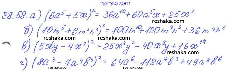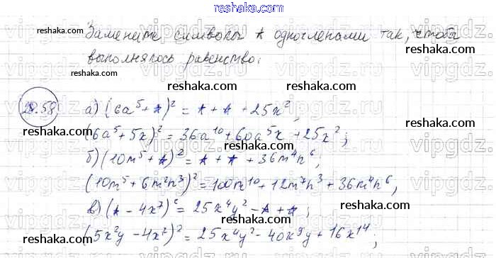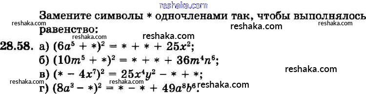 Представляем вам сборники по Алгебре, с готовыми ответами к Задачнику Мордкович школьной программы для учеников седьмой класса. Это не просто гдз с ответом, а с подсказками, как верно решить § 28. Формулы сокращенного умножения Глава 6 58. Проверяй домашку с умом и получай высший балл!