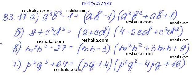 Представляем вам сборники по Алгебре, с готовыми ответами к Задачнику Мордкович школьной программы для учеников седьмой класса. Это не просто гдз с ответом, а с подсказками, как верно решить § 33. Разложение многочленов на множители с помощью формул сокращенного умножения Глава 7 17. Проверяй домашку с умом и получай высший балл!