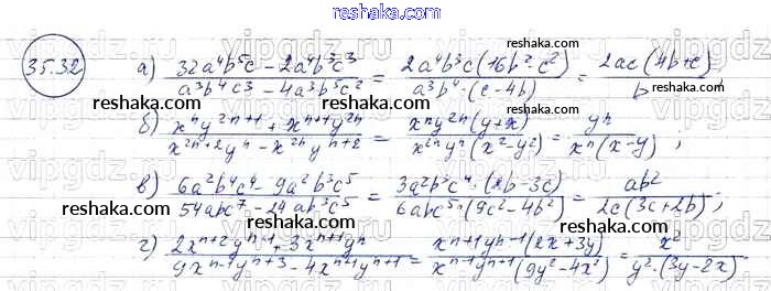 Представляем вам сборники по Алгебре, с готовыми ответами к Задачнику Мордкович школьной программы для учеников седьмой класса. Это не просто гдз с ответом, а с подсказками, как верно решить § 35. Сокращение алгебраических дробей Глава 7 32. Проверяй домашку с умом и получай высший балл!