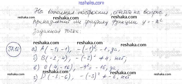 Представляем вам сборники по Алгебре, с готовыми ответами к Задачнику Мордкович школьной программы для учеников седьмой класса. Это не просто гдз с ответом, а с подсказками, как верно решить § 37. Функция у = х2 и ее график Глава 8 10. Проверяй домашку с умом и получай высший балл!