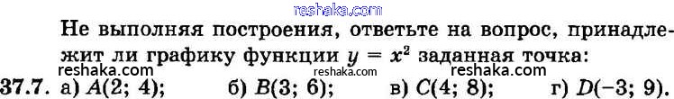 Представляем вам сборники по Алгебре, с готовыми ответами к Задачнику Мордкович школьной программы для учеников седьмой класса. Это не просто гдз с ответом, а с подсказками, как верно решить § 37. Функция у = х2 и ее график Глава 8 7. Проверяй домашку с умом и получай высший балл!