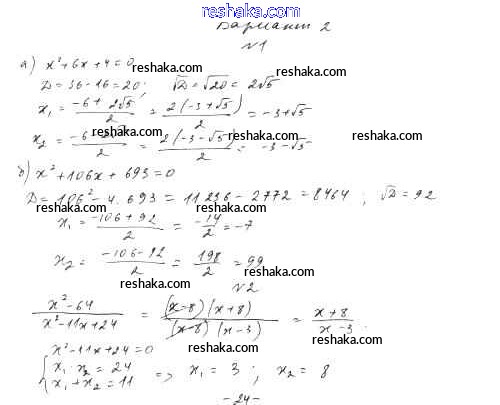 Решака - онлайн ответы Алгебра Александрова за 8 класс Контрольные работы Базовый уровень ФГОС 2016 - 2