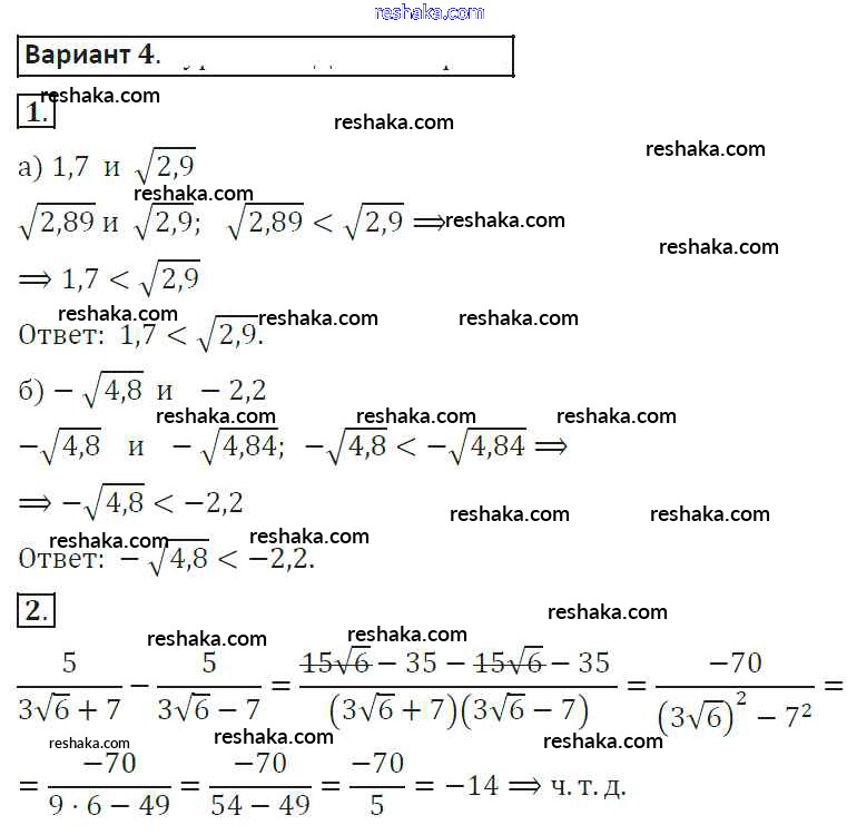 Решака - онлайн ответы Алгебра Александрова за 8 класс Самостоятельные работы ФГОС 2016 - 4