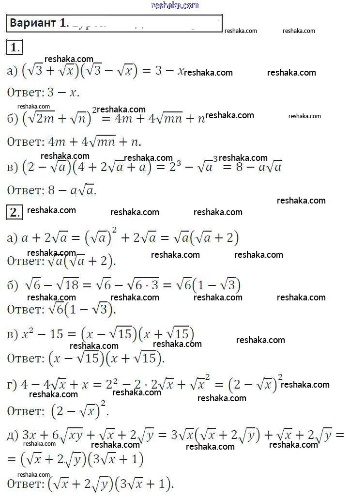 Решака - онлайн ответы Алгебра Александрова за 8 класс Самостоятельные работы ФГОС 2016 - 1