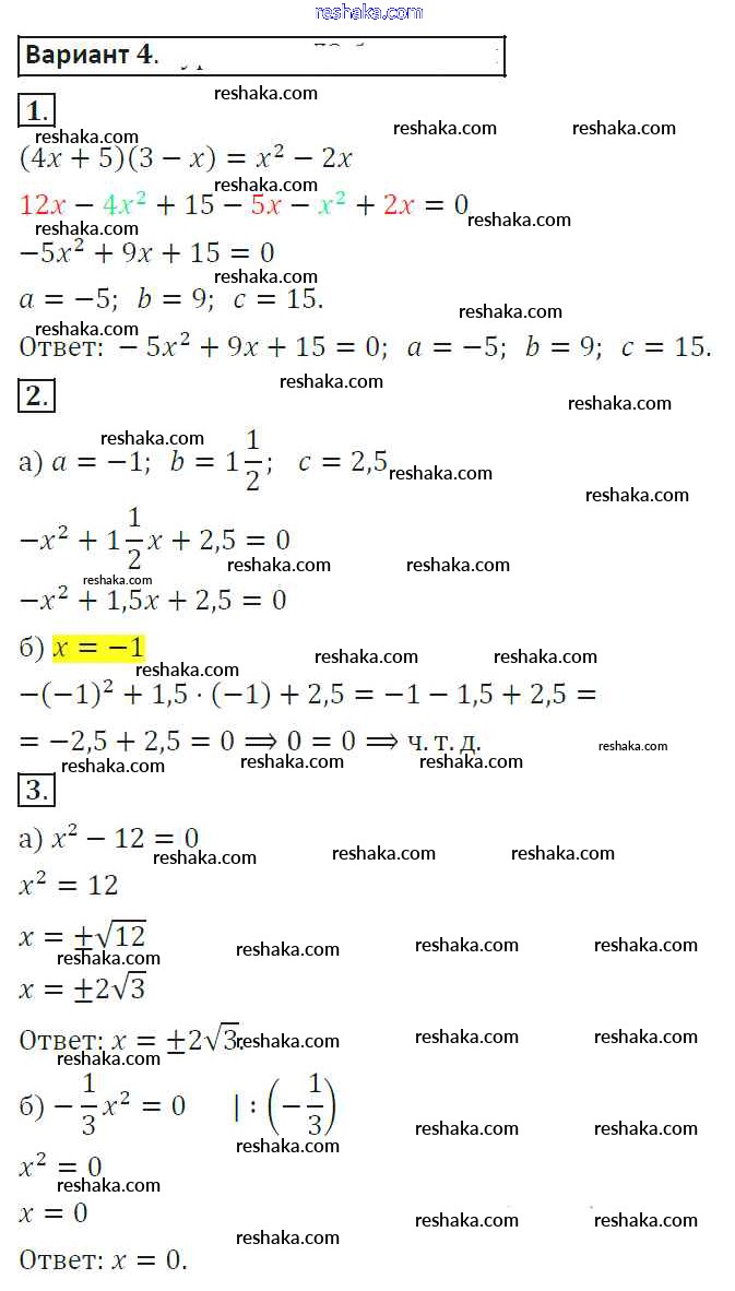 Решака - онлайн ответы Алгебра Александрова за 8 класс Самостоятельные работы ФГОС 2016 - 4