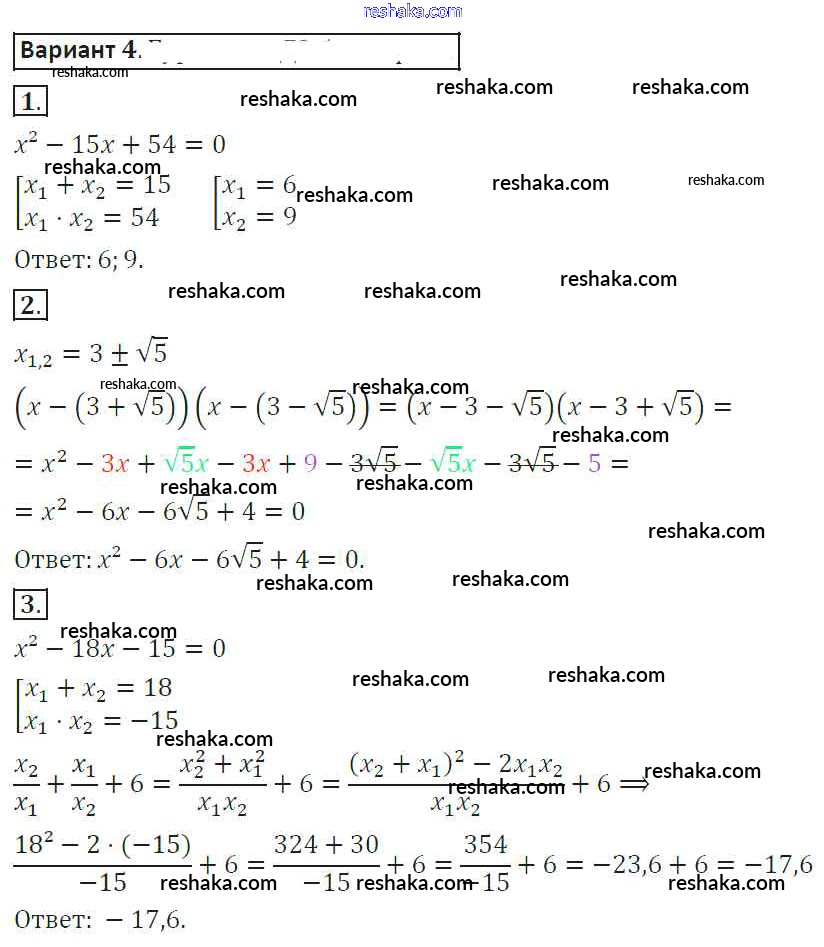 Решака - онлайн ответы Алгебра Александрова за 8 класс Самостоятельные работы ФГОС 2016 - 4